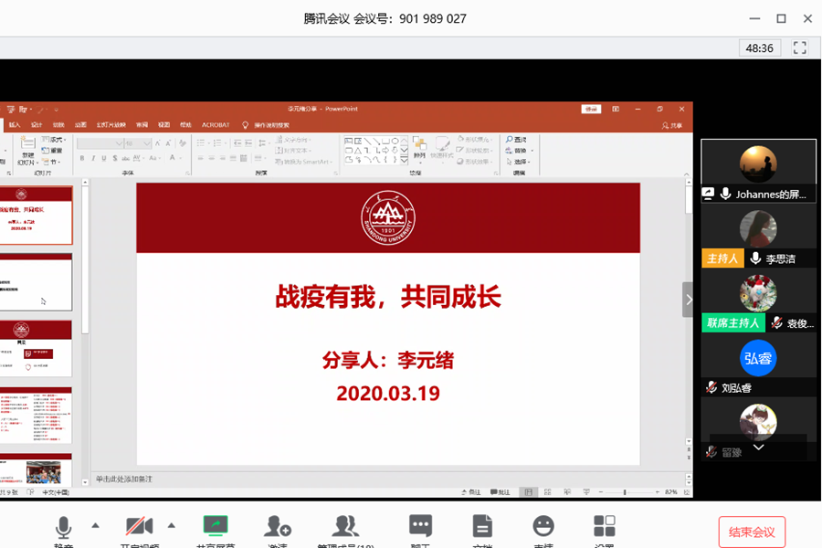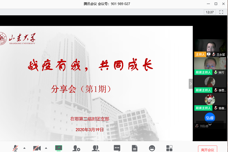 3月19日,beats365亚洲版官网在鄂员工第二临时团支部第一期“战疫有我,共同成长”系列主题团日活动以线上会议形式举行。公司党委副书记林竹老师,beats365亚洲版官网团委书记暨第二临时团支部指导员王永军老师、泰山学堂团委负责人刘梦嘉老师参加。活动由临时团支部书记、beats365亚洲版官网2016级本科生李思洁主持。