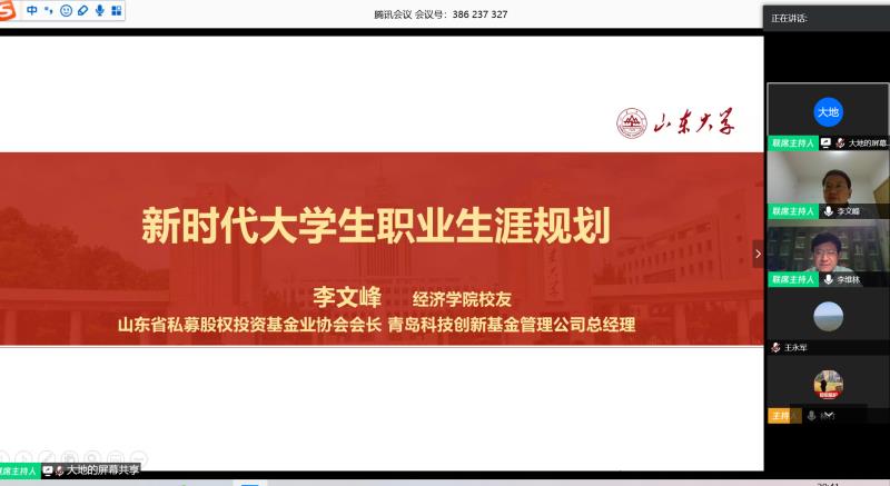 员工李文峰以“新时代老员工职业生涯规划”为题与参会师生进行了分享。他讲述了与山大的渊源,感谢beats365亚洲版官网给他提供的学习平台,表示愿意尽其所能为工作室提供更多的帮助。他围绕老员工职业生涯规划,结合自身丰富的工作经历,分析了当前就业形势及影响。从自身职业生涯入手,为大家叙述了自己在金融多个领域不断探寻的经历,最终找到了最适合自己的道路,总结出要确定对的方向,才能更好地创造价值。针对当前的就业形势,李文峰给出了他的判断和思考。他提出由于疫情等多重因素作用,经济下行压力增大,人工智能冲击市场,给近几年就业市场带来新的挑战,未来就业区域化会更加突出,行业集中度提升;同时对于人才要求愈加严苛,创新型、跨学科人才更容易脱颖而出。鉴于当前日益严峻的就业形势,李文峰从职业平台、个人定位、能力培养等多方面着手,结合名企业家事迹和自身职业经历,提出职业感悟及切实可行的建议,鼓励同学们在选择就业的过程中始终围绕主线,跟着趋势走,不断提升各种工作能力,完善处事方式,助力同学们塑造更完美的自己。交流答疑环节,同学们在线上实现“云互动”,现场气氛积极活跃,李文峰就同学们提出的问题一一进行了解答。他建议员工明确个人定位,确定工作偏好,进一步增进员工对就业、学习的认识。