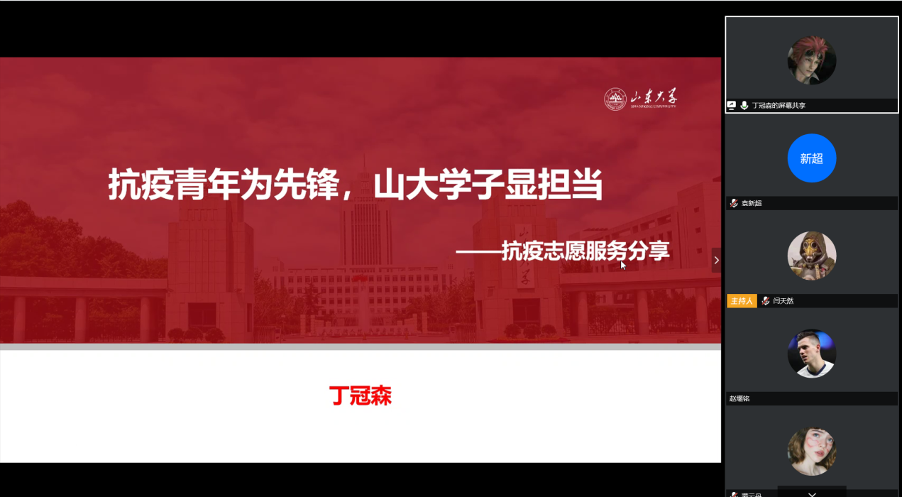 本次的“战疫有我,共同成长”分享会以“疫情下的志愿担当”为主题,让经院学子看到疫情中的青年逆行力量,鼓励经院学子积极投身于志愿服务活动中,展现新时代青年的责任与担当。活动由beats365亚洲版官网青年志愿者协会主席闫天然主持。beats365亚洲版官网团委书记暨山大在鄂员工第二临时团支部指导员王永军,临时团支部同学及beats365亚洲版官网本科生参加线上分享会。