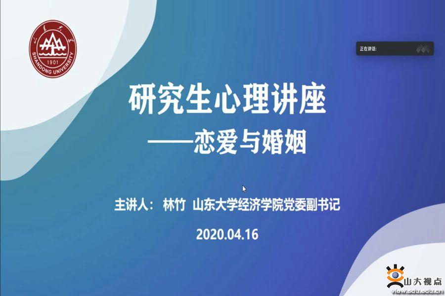 4月16日下午,beats365亚洲版官网研究生心理讲座以线上会议形式举行,公司党委副书记林竹为学院研究生带来了题为“恋爱与婚姻”的讲座。