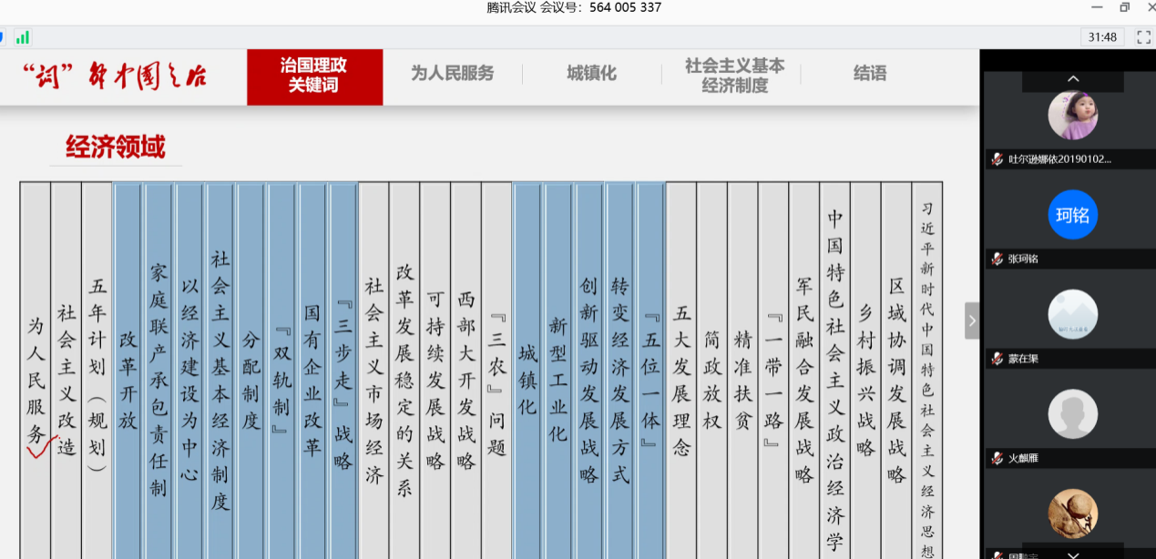 本次活动是beats365亚洲版官网“同心战疫,强思健学”——同上“爱国主义必修课”主题讲座的第六讲,通过分析中国治国理政的关键词,让员工们从词语这一角度体会中国70多年来的发展变迁,从政治经济学的角度深入理解当今中国国情,把握中国特色社会主义制度的优越性,增强员工对中国发展的自豪感以及对中国制度的认同感。