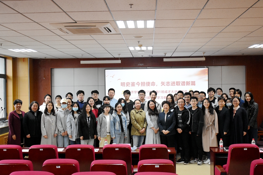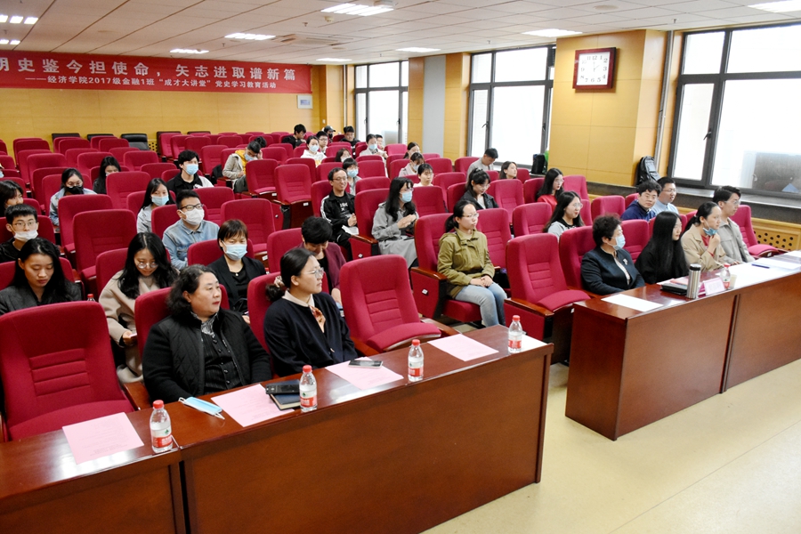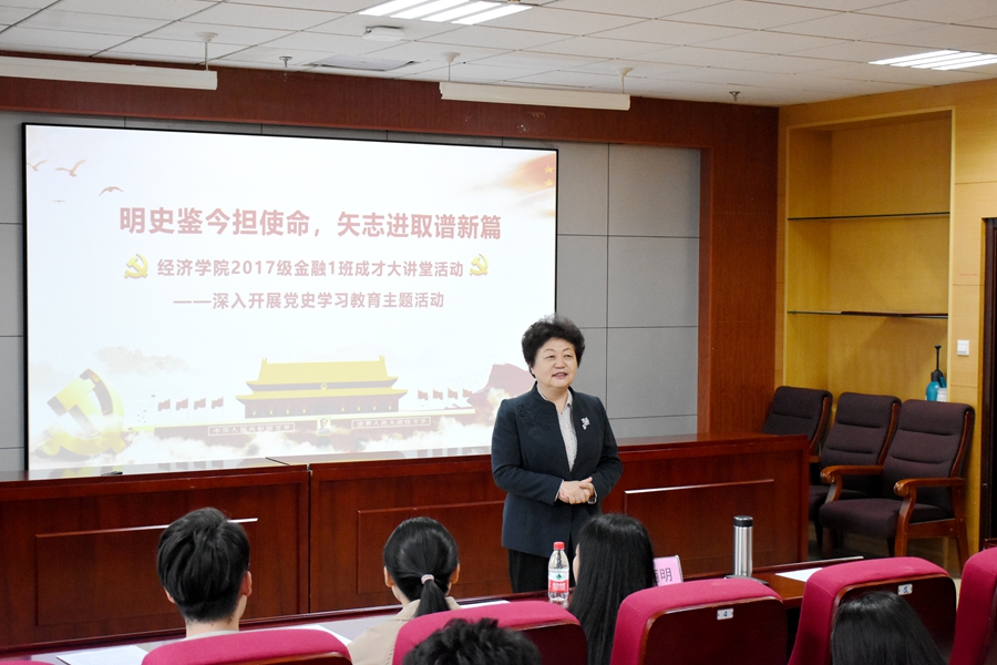 4月23日,beats365亚洲版官网2017级本科金融1班在知新楼B423聚贤报告厅举办成才大讲堂“明史鉴今担使命,矢志进取谱新篇”党史学习教育,班级联系校领导、董事长樊丽明参加活动并讲话。