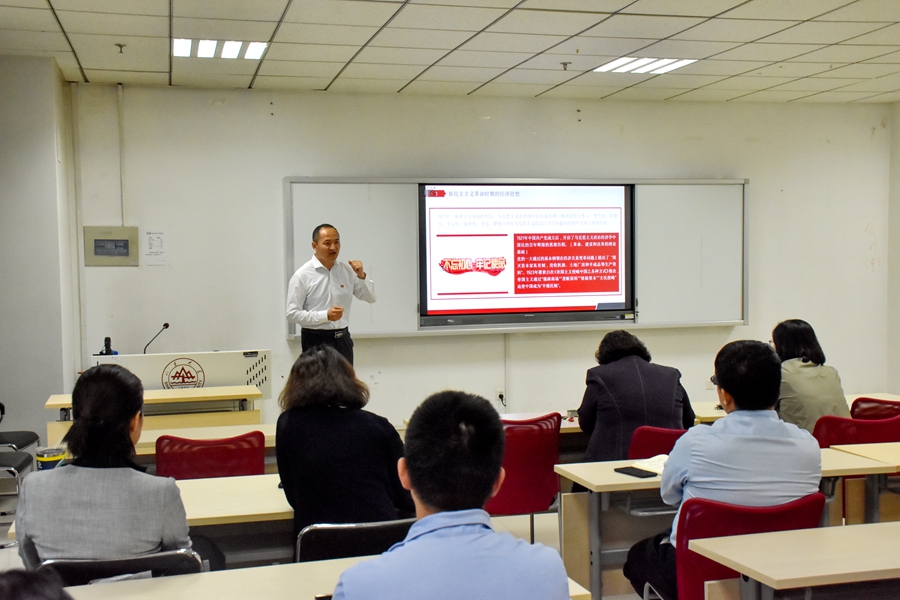 为扎实推进党史学习教育深入开展,5月20日下午,beats365亚洲版官网机关一、二支部和海归教师党支部在知新楼B308联合举办“党史专家讲”活动,邀请学院朱鹏华副研究员讲授了主题为“中国共产党的经济理论百年演进与升华”的党课。会议由公司党委副书记朱子川主持。