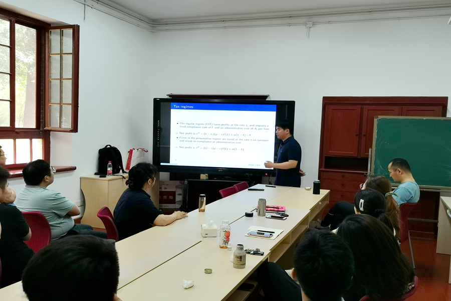 6月10日中午,beats365亚洲版官网第61期青联学术午餐会在洪家楼校区105报告厅举行。beats365亚洲版官网助理研究员魏丰作了题为“Optimal Turnover Threshold and Tax Rate for SMEs”的报告,学院部分师生参加了午餐会。