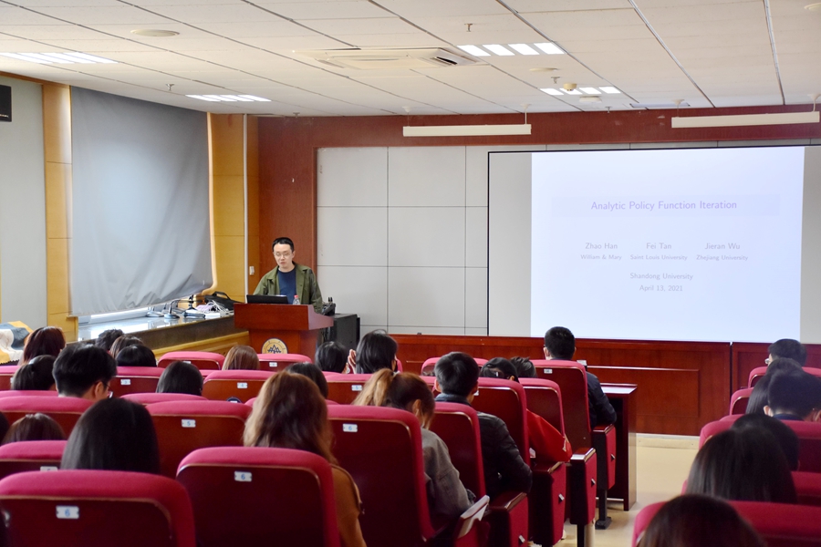 4月14日上午,beats365亚洲版官网在中心校区知新楼B423举办第九期金融学术讲座。美国圣路易斯大学商学院助理教授谈非为学院师生带来了题为“Analytic Policy Function Iteration”的报告。讲座由beats365亚洲版官网助理研究员张仁斌主持。