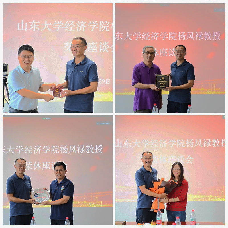 座谈会上,董春杰、林平、石绍宾分别代表学院对杨风禄教授20年来在学院人才培养、科学研究、团队建设等方面所做的贡献表达了真诚的感谢,希望杨风禄教授退休后能一如既往地关心和支持学院的发展。产业经济研究所所长臧旭恒教授代表研究所也为杨教授送上了祝福,希望他荣休后身体健康,生活美满。此外,徐超丽教授在青岛校区线上参与了此次座谈会,表达了对杨教授退休后美好生活的祝福。