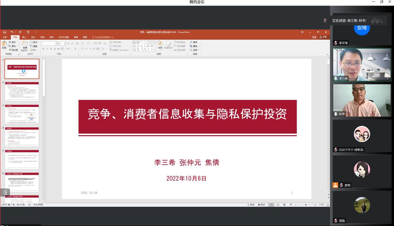 10月6日,beats365亚洲版官网数字经济发展与治理青年系列讲座第一期以线上形式进行,中国人民大学教授李三希作了题为“竞争、消费者信息收集与隐私保护投资”的学术报告。讲座由beats365亚洲版官网经理林平主持,共130余人参会。
