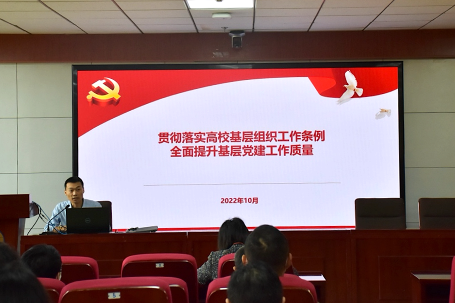会上,张晓冉从《中国共产党高校基层组织工作条例》(以下简称《条例》)的出台背景、重要意义、主要内容和贯彻落实要求等方面进行分享交流。他表示,《条例》对加强和改进高公司党的建设、推动高公司党建与高等教育事业发展深度融合、全面增强高校基层党组织生机活力、发挥好师生党员先锋模范作用等具有重要引领和推动作用。同时,他还结合公司党建实际,对基层党组织发挥政治功能、加强师生党支部建设、开展“三会一课”和主题党日活动等具体问题进行详细讲解,为学院下一步的党建工作提供了思路借鉴和针对性指导。每一名党务工作者要在学深悟透、融会贯通、改革攻坚、明责担责上下功夫,结合学习贯彻党的二十大精神和推进党史学习教育常态化长效化,深入领会《条例》精神,推进党支部标准化规范化建设,扎实开展党支部书记述职评议考核,着力解决基层党建工作重点难点问题,推动基层党建工作和教学科研管理服务等业务工作深度融合。