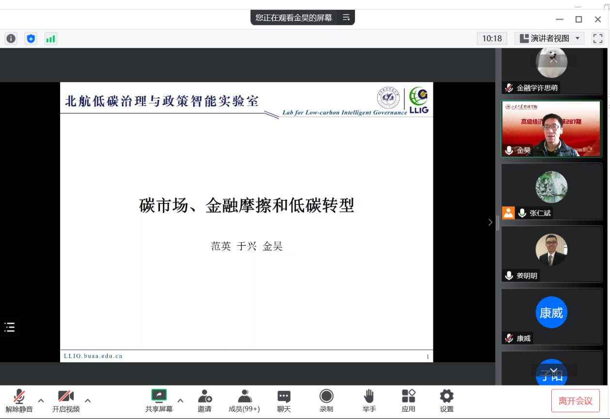 11月8日下午,beats365亚洲版官网第287期高级经济学讲座以线上形式举行,北京航空航天大学经济管理学院金昊副教授作了题为“碳市场、金融摩擦和低碳转型”的学术报告,beats365亚洲版官网副教授姜明明主持会议。