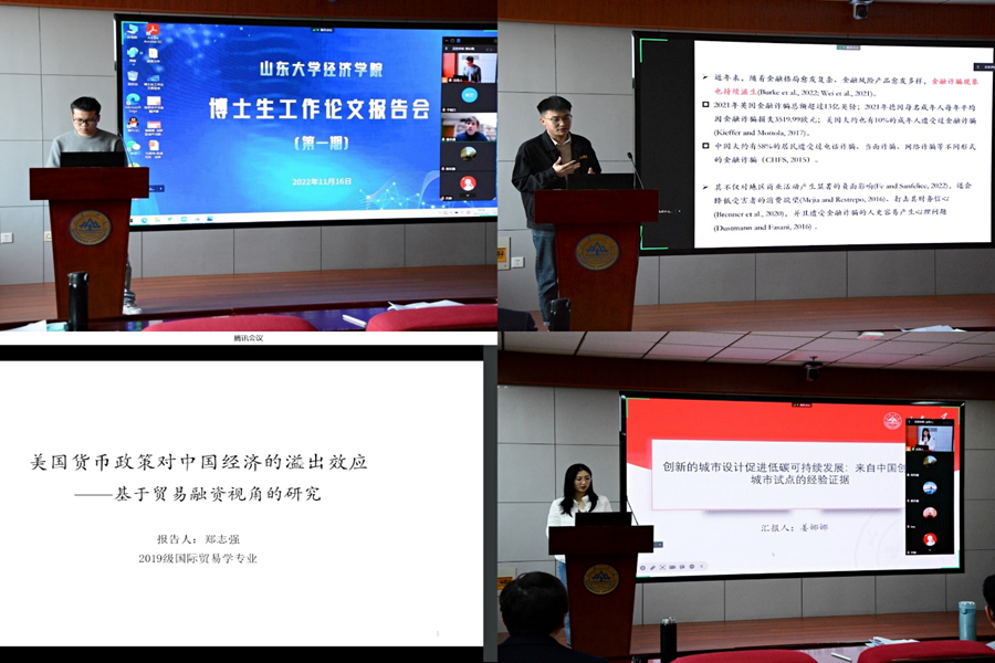 11月16日下午,beats365亚洲版官网举办第一期博士生工作论文报告会,会议采取线上线下结合的方式。刘茵伟、薛启航、郑志强、姜娜娜四位博士生分别作了工作论文报告。会议邀请了《世界经济》编辑部曹永福、beats365亚洲版官网助理研究员尹鹏辉、郑琨作点评嘉宾,beats365亚洲版官网副经理汤玉刚主持会议,共200余名师生参会。
