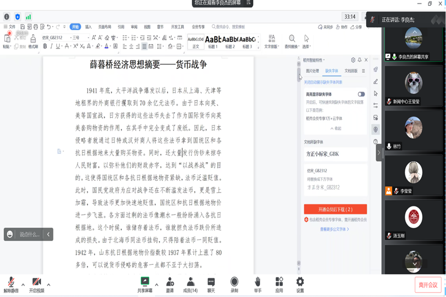 会议集体学习了党的二十大报告中关于“推进文化自信自强,铸就社会主义文化新辉煌”的重要内容,重温了习近平总书记给《文史哲》编辑部全体编辑人员重要回信精神、给南京大学留学归国青年学者回信精神,学习了薛暮桥先生抗战时期领导山东抗日根据地开展货币战争的历史,重点围绕“走近薛暮桥”学院文化品牌建设展开交流研讨。
