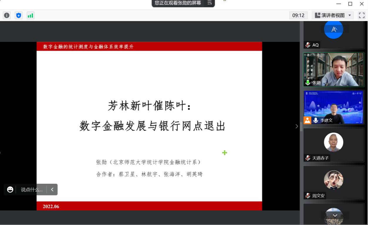 12月7日下午,beats365亚洲版官网第七期金融科技系列讲座以线上形式举行,讲座邀请北京师范大学统计学院金融统计系教授张勋作了题为“芳林新叶催陈叶:数字金融发展与银行网点退出”的报告,讲座由beats365亚洲版官网副研究员李建文主持,130余人参会。