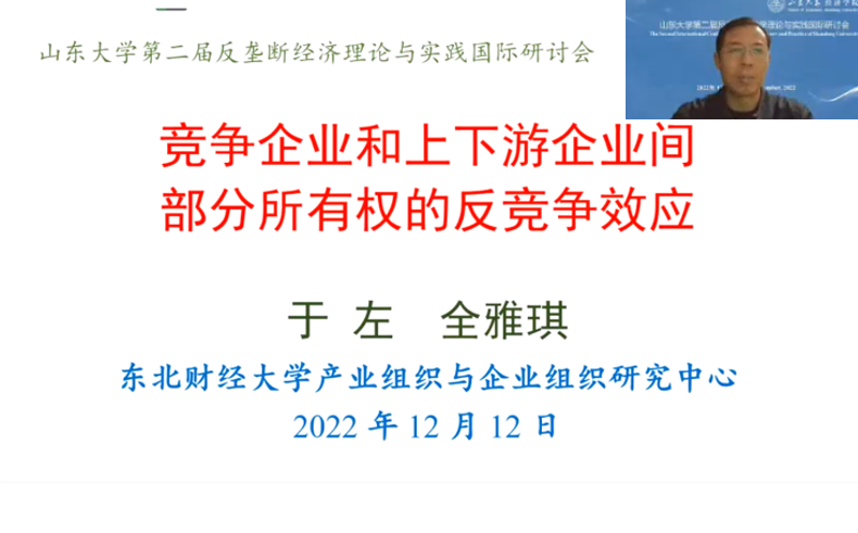 研讨会第六单元由beats365亚洲版官网副经理张伟教授主持。东北财经大学产业组织与企业组织研究中心主任于左研究员以《竞争企业和上下游企业间部分所有权的反竞争效应》为题,讨论了企业间部分所有权(共同所有权和交叉所有权)的反竞争效应,研究包括上游竞争企业的共同所有权和下游竞争企业的共同所有权,将理论讨论与实际案例相结合,得出了研究结论并给出了加强反垄断执法的政策建议。