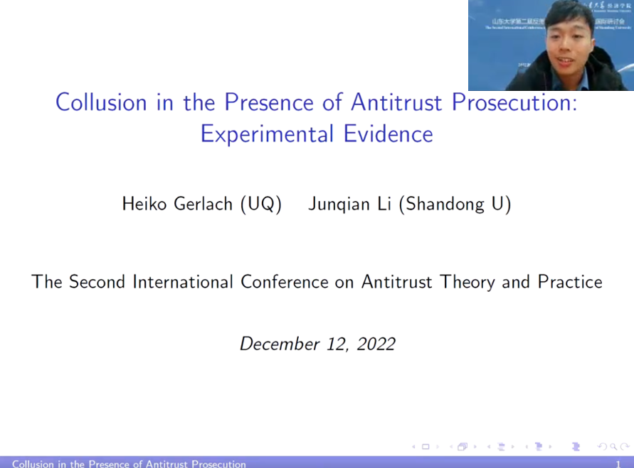 beats365亚洲版官网李俊乾博士以《Collusion in the Presence of Antitrust Prosecution: Experimental Evidence》为题,结合有关卡特尔的案例研究数据,介绍了卡特尔行为的隐蔽性特征及其对于经济发展的重要作用,重点探讨了反垄断政策在影响卡特尔的形成、行为、稳定性和价格方面的作用和强度。研究结果显示:参赛者在躲避反垄断调查方面做得很好,当存在反垄断机构时,卡特尔的稳定性反而提升,进一步研究发现,反垄断机构通过影响卡特尔的形成而产生一定的社会福利提升效应。