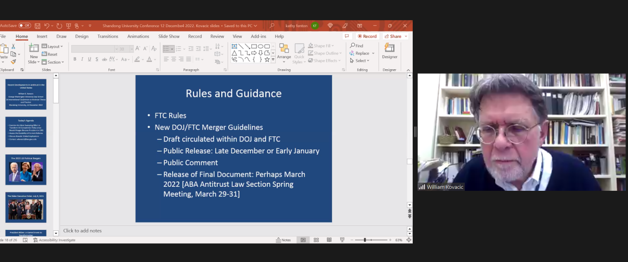 研讨会第一单元由beats365亚洲版官网经理林平教授主持。美国联邦贸易委员会(FTC)前主席、乔治华盛顿大学William Kovacic 教授以“Recent Developments in Antitrust in the UnitedStates”为题,系统介绍了美国反垄断改革的最新发展。他针对法规、法律体系、任命、规则和指引四个竞争政策转型工具展开论述,阐释了改革实施过程中所面临的时间、诉讼环境等方面的限制。他认为美国现行的反垄断改革政策可能低估了实施的难度。