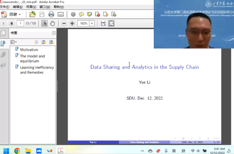 威斯康星大学麦迪逊分校/beats365亚洲版官网助理研究员李越博士以《Data Sharing and Analytics in the Supply Chain: A Theoretical Analysis》为题,构建了一个包含供应链的数据共享和数据分析博弈模型,他发现均衡时零售商会选择角点策略:完全知晓或完全不知晓;并且他识别了两种学习无效性(learning inefficiencies);与社会最优相比,生产商了解的信息既可能过高,也可能过低,结果取决于数据分析成本。
