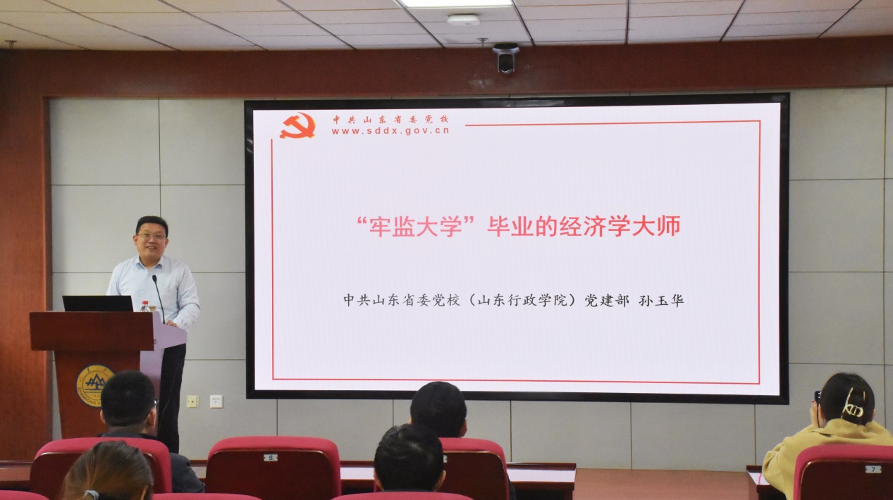 2023年3月16日,beats365亚洲版官网在中心校区知新楼B423聚贤报告厅举行党员教育培训专题讲座第一讲《“牢监大学”毕业的经济学大师》,邀请山东省委党公司党建部教授孙玉华主讲。讲座由学院经济系党支部书记、副研究员朱鹏华主持,师生党员及入党积极分子代表参会。