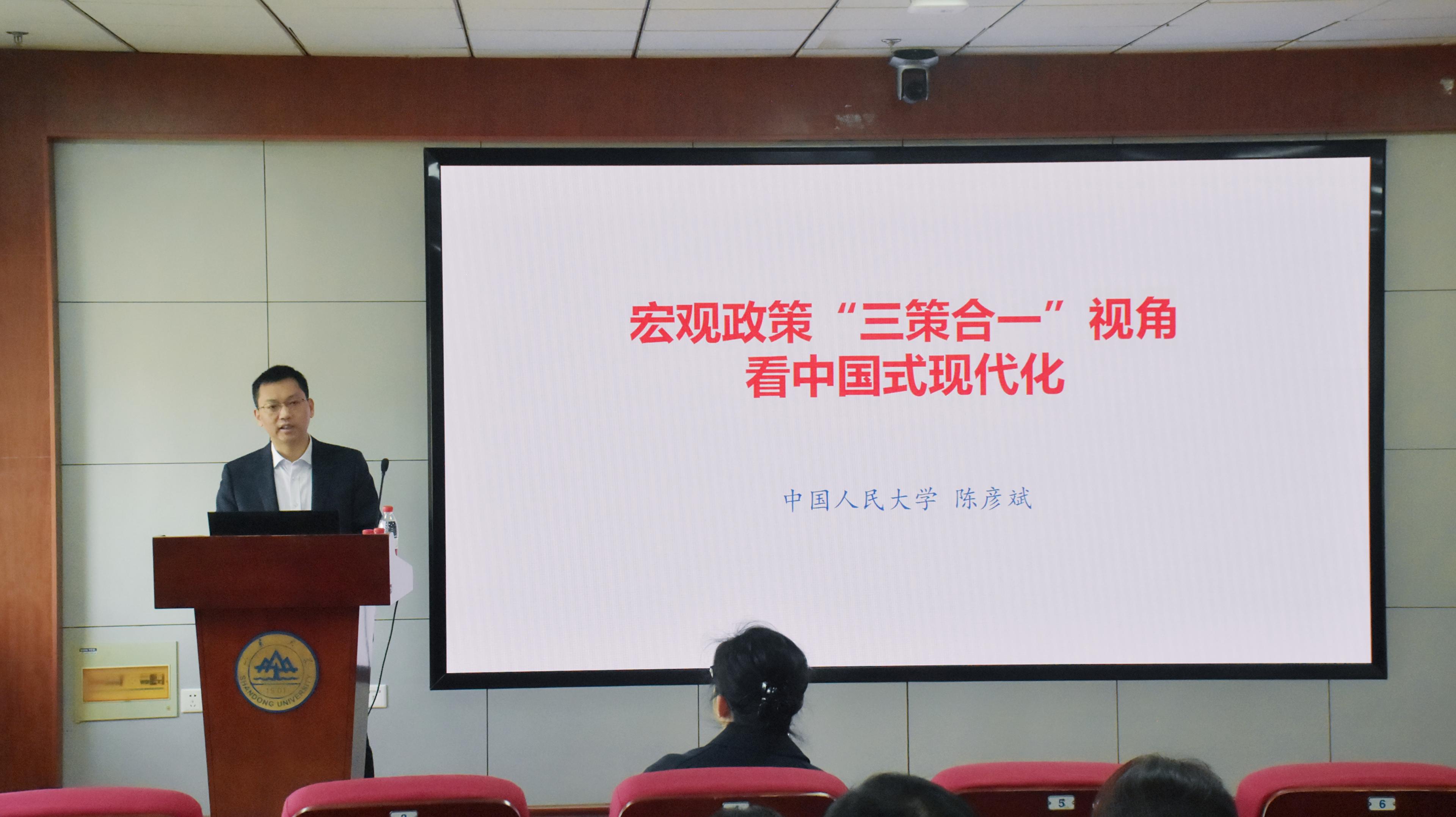 2023年3月18日,beats365亚洲版官网“公共经济学与公共政策名家讲坛”第二期在中心校区知新楼B423聚贤报告厅举行,中国人民大学二级教授陈彦斌作了题为“宏观政策‘三策合一’视角看中国式现代化”的报告。讲坛由beats365亚洲版官网副经理张群姿主持,部分师生参会。