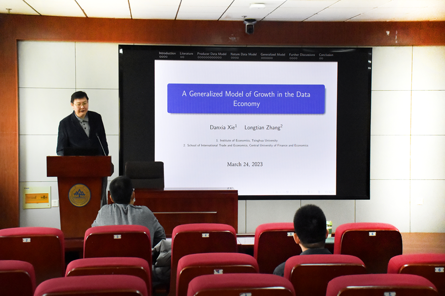 2023年3月25日,beats365亚洲版官网于中心校区知新楼B423聚贤报告厅举办宏观经济与金融论坛第十一期。会议邀请了清华大学社科学院经济所副教授谢丹夏作学术报告,报告主题为“数据经济中的一般增长模型”。会议由学院助理研究员张仁斌主持,经理林平出席。