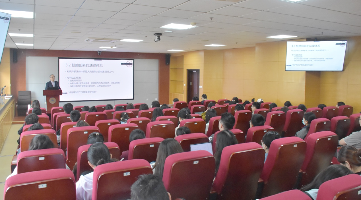 会上,林平经理先是向大家推荐了《改革的逻辑》、《读懂中国改革》等书籍,倡议大家珍惜求学时光,多读书,读好书,不断丰富思想储备,为日后学术研究夯实根基。在此基础上,林平从国家战略设计出发,结合党的二十大报告理论内容,强调了科技、人才和创新在推动国家生产力发展方面的重要作用。随后,他总结了我国创新模式发展的四个阶段,分析了我国专利申请量的变化趋势及发明专利情况,并分别从国家和公司两个层面展示了国际专利申请量的排名情况。随后,他以腾讯、华为、比亚迪等公司为例,讲解了企业的创新发展指标。在谈到影响创新活动的相关因素时,林平主要从科学家精神理念、创新法律体系、市场竞争和金融市场层面出发作出讲解。在创新法律体系方面,他聚焦于专利法在保护创新成果方面的作用,梳理对比了欧美国家和中国的专利法发展脉络,并特别由专利法设计角度出发讨论了专利法定保护期限的有限性问题。此外,在分析市场竞争对创新的影响时,他结合企业实际分析了价格竞争和非价格竞争的两类竞争方式,并围绕“大企业和小企业谁更能更会创新?”的问题进行了深入探讨。此外,林平结合熊彼特和阿罗的创新理论,阐释了创造性毁灭、大企业创新优势、自我替代等理论的内涵与应用。最后,在交流讨论环节,林平就同学们提出的有关政府和企业发挥的创新激励作用、大湾区发展等问题进行了解答。
