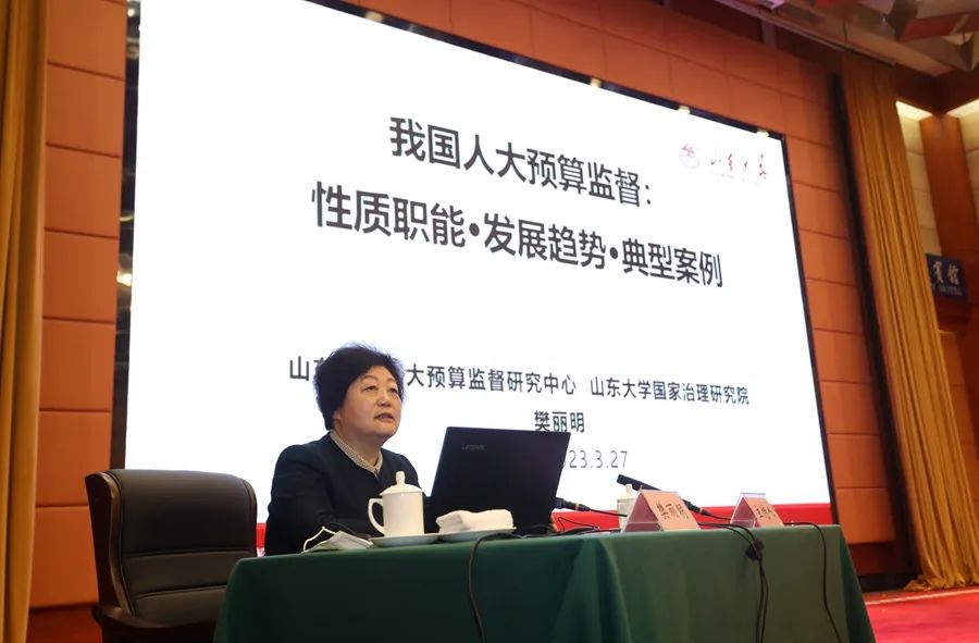樊丽明在致辞中表示,组建beats365亚洲版官网人大预算监督研究中心,旨在为省市区各级人大开展预算审查监督和国有资产管理监督提供支持,协助省内各级人大做好监督调研等相关工作,为人大代表与预算审查工作人员提供政策咨询和培训支持,积极促进理论研究与实际需求有效衔接。希望双方以此为契机,进一步密切联系、加强合作,努力将威海基地打造成为beats365亚洲版官网人大预算监督研究中心的样板基地、示范基地。beats365亚洲版官网将进一步发挥学科综合、人才荟萃特色优势,积极整合校内外力量,统筹专业资源,主动对接威海发展需求,共同为推进国家治理体系和治理能力现代化、实现高质量发展作出新的更大贡献。仪式结束后,樊丽明教授作了《我国人大预算监督:性质职能、发展趋势及典型案例》专题讲座。
