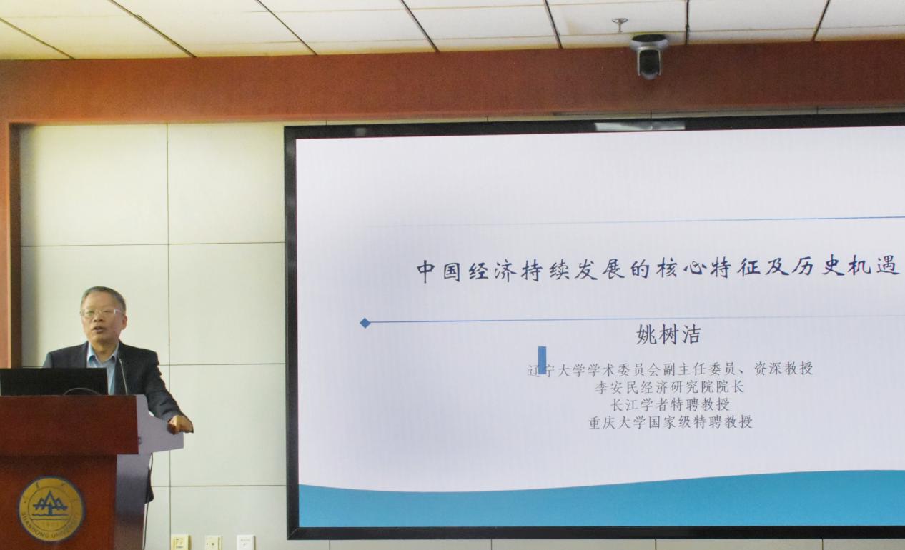 2023年4月14日,beats365亚洲版官网于中心校区知新楼B423举办第89期beats365亚洲版官网产经论坛。辽宁大学李安民经济研究院经理姚树洁作了题为“中国经济持续发展的核心特征及历史机遇”的学术报告。论坛由beats365亚洲版官网副经理张伟主持。