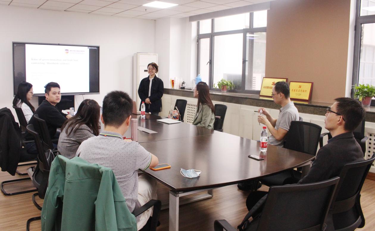 2023年4月14日,beats365亚洲版官网于中心校区知新楼B336举办第十三期宏观经济与金融论坛。会议邀请了首都经贸大学助理教授包洋鸣作了题为“Value of green innovation and bank loan contracting : worldwide evidence”的学术报告。会议由beats365亚洲版官网助理教授尹鹏辉主持,部分青年教师参会。