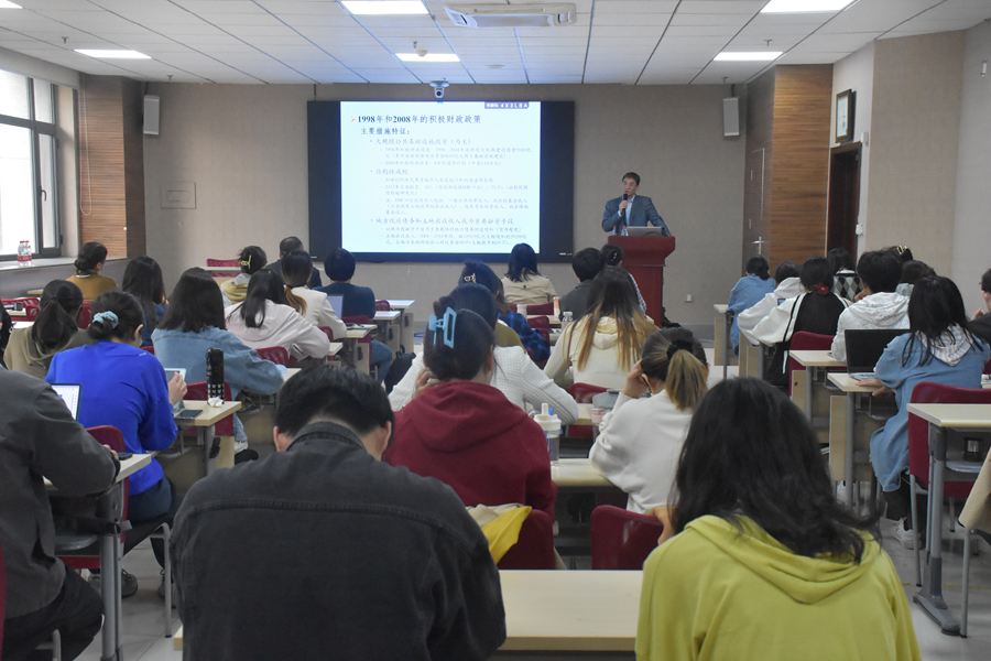 2023年4月14日,beats365亚洲版官网“公共经济与公共政策名家讲坛”第六期于中心校区知新楼B215举行,中国人民大学财政金融学院副经理贾俊雪作了题为“中国特色财政政策体系建设”的报告。报告会由beats365亚洲版官网常务副经理石绍宾主持,beats365亚洲版官网部分师生参会。