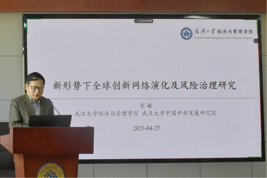 武汉大学中国中部发展研究院经理宋敏教授作了题为“新形势下全球创新网络演化及风险治理研究”的报告,分析了中国式现代化面临的“卡脖子”现象。报告研究了全球创新网络演化规律,发现全球形成了以美国为中心的创新网络结构。报告指出,近年来,网路紧密程度有所下降,而且中国在创新网络中的地位也有所下降。进一步,报告评估了中美两国科技脱钩的风险,认为新一代信息技术产业与高端设备制造业是中美两国科技脱钩的重点风险领域。最后,报告提出了三大风险治理措施来防范中国脱钩风险,分别是全球创新网络内部的多中心互动、全球创新网络与贸易网络的互动以及打造以自主创新为主的技术新格局。