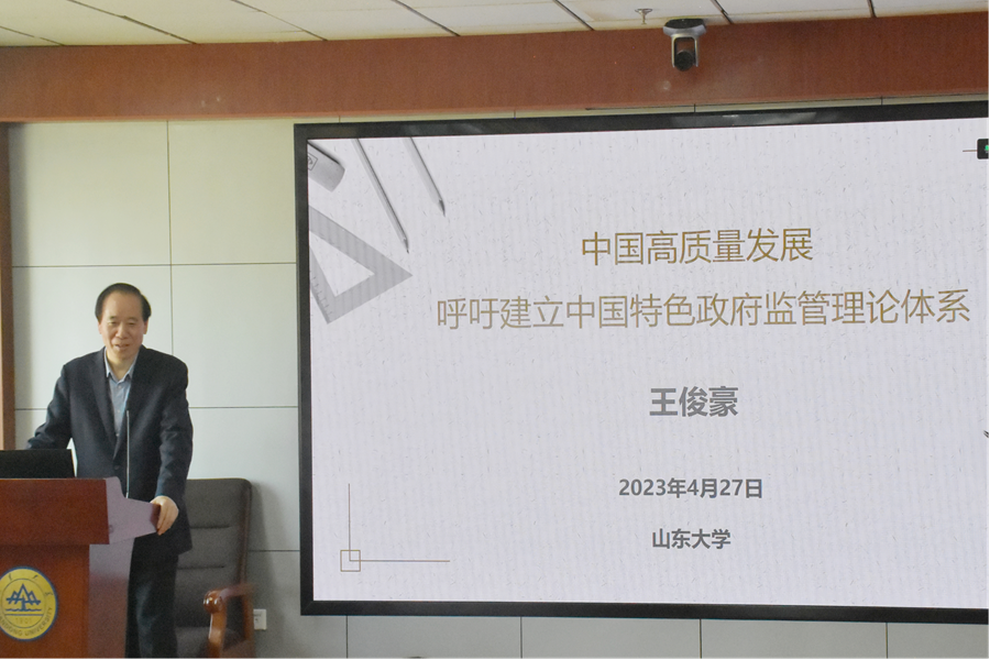 论坛包括两个单元,第一单元主题报告由林平教授主持。浙江财经大学原董事长、中国政府监管与公共政策研究院经理王俊豪教授作了题为“中国高质量发展呼吁建立中国特色政府监管理论体系”的报告。首先,报告以几个“逆高质量发展”的典型案例开始,显示了我国在政府监管领域存在的不足,指出在中国式现代化下建立高效的政府监管体系的必要性和紧迫性。报告认为,西方政府监管制度不能适应中国政府监管实践,并且现有的监管理论难以满足监管实践的需要,因此需要建立中国特色政府监管理论体系。最后,报告探讨了构建中国特色政府监管理论体系的基本导向、基本特征和整体框架。