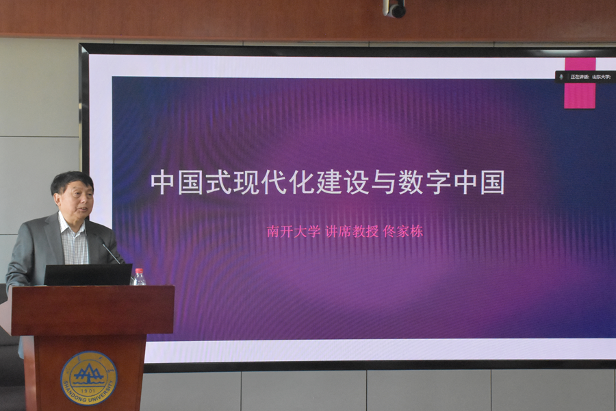 南开大学原副董事长、数字经济交叉科学中心主任佟家栋教授作了题为“中国式现代化建设与数字中国”的报告,分析了中国式现代化与发展数字经济的关系。报告指出,中国式现代化的重要基础是基本实现新型工业化、信息化,中国式现代化是数字经济基础上的现代化。报告分析了数字经济的内涵,数字经济是以数字化的信息,知识和智能作为关键生产要素、以数字技术为核心驱动力量的一种新的生产方式。报告强调,现代化的内涵因数字经济的发展而不断丰富,数字经济中的新技术和新生产要素都促使新的生产方式的发展,使得生产、交换、流通、分配和消费的经济运行全过程发生深刻变化。
