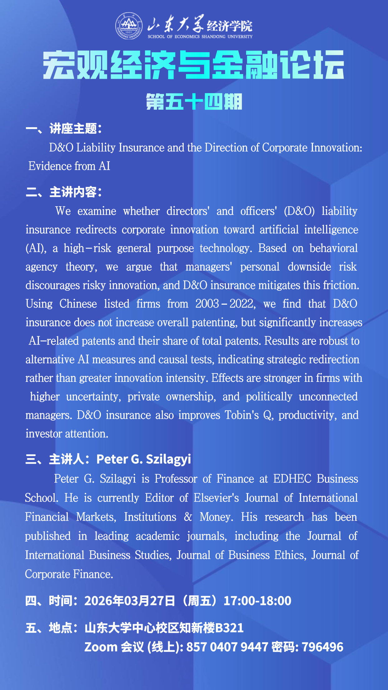 D&O Liability Insurance and the Direction of Corporate Innovation:Evidence from AI(宏观经济与金融论坛第五十四期)