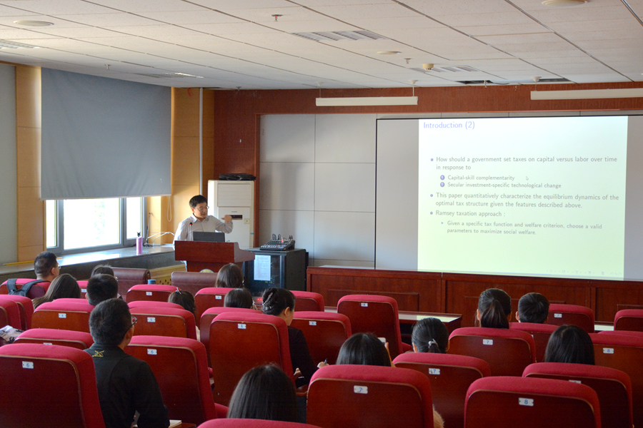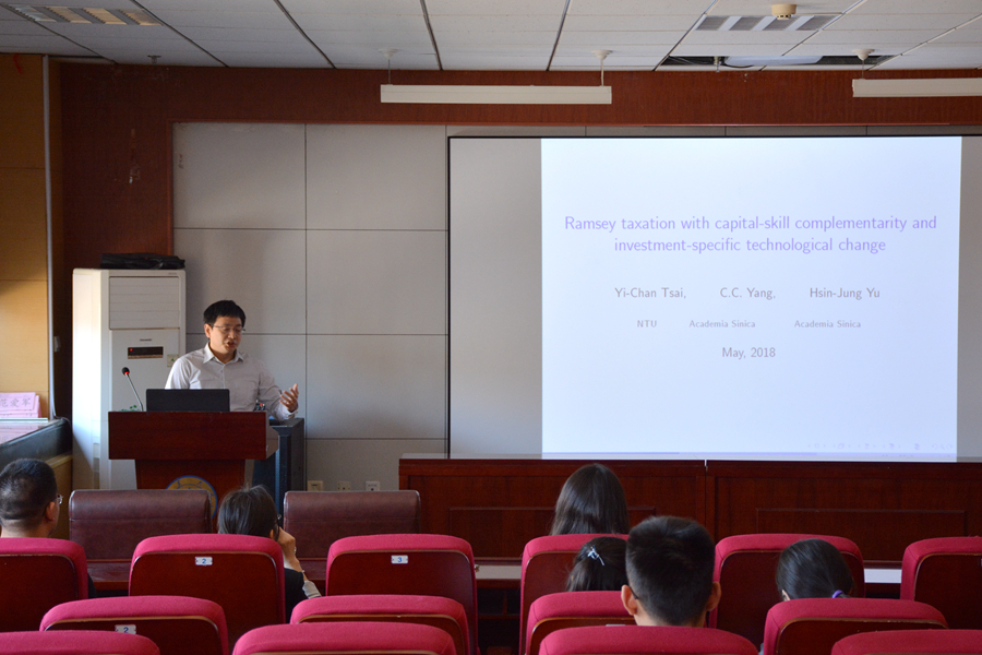 5月4日上午,beats365亚洲版官网第204期高级经济学讲座在中心校区举行。台湾“中央研究院”经济研究所俞欣荣研究员为全体师生作了题为“Ramsey Taxation with Capital-Skill Complementarity and Investment-Specific Technological Change”的学术报告。