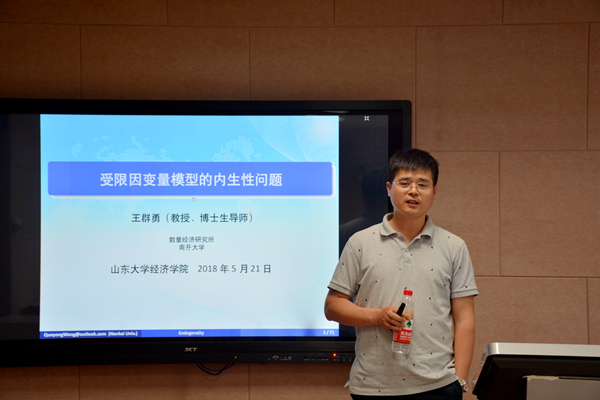 5月21日,beats365亚洲版官网第10期金融论坛在中心校区举行。南开大学数量经济研究所常务副所长、天津市数量经济学会秘书长王群勇教授为beats365亚洲版官网师生作题为“受限因变量模型内生性问题”的学术报告。报告由beats365亚洲版官网经理曹廷求教授主持。