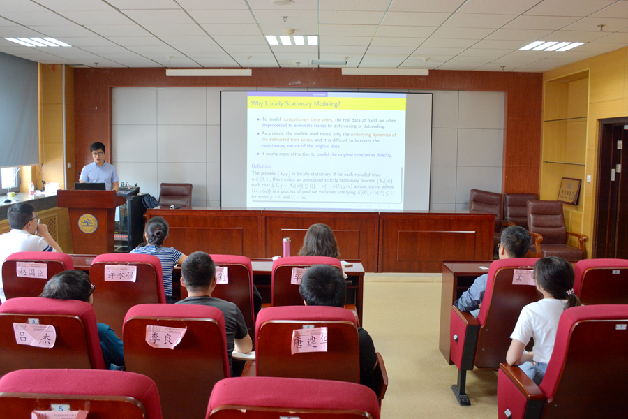 报告主要研究了一个复杂的面板数据模型,相较于简单的面板数据的模型而言,该模型实现了一些创新型的突破。报告指出,在面板数据集分析中,个体异质性和结构变化特征可能共存,但现有的面板数据模型只能满足这两个重要特征中的一个。因此,针对这一问题,报告提出了一种新的非参数和变系数面板数据模型,在使用局部平稳假设,允许时间序列长度T和横截面大小N同时取得较大的数值情况下对于模型进行推导。接下来,报告介绍了所提出的模型中的一些估计量的渐近估计理论,并提出了一种新颖的两阶段估计方法。最后,报告通过对两个模拟实验和一个真实的数据集对模型进行稳健性分析,以此说明模型的有效性。报告结束后,裴有权博士与现场师生进行了互动,并针对相关问题作出了解答。