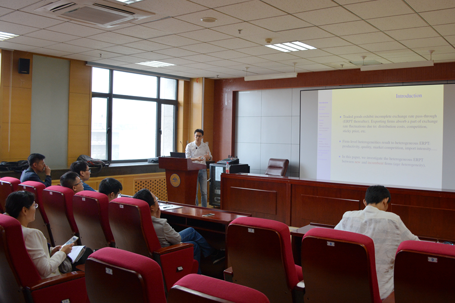 9月20日上午,beats365亚洲版官网第221期高级经济学讲座在中心校区举行。南京财经大学谭用副教授为beats365亚洲版官网师生带来了题为“Firms’Heterogeneity, Demand Accumulating, and Exchange Rate Pass-Through”的学术报告。