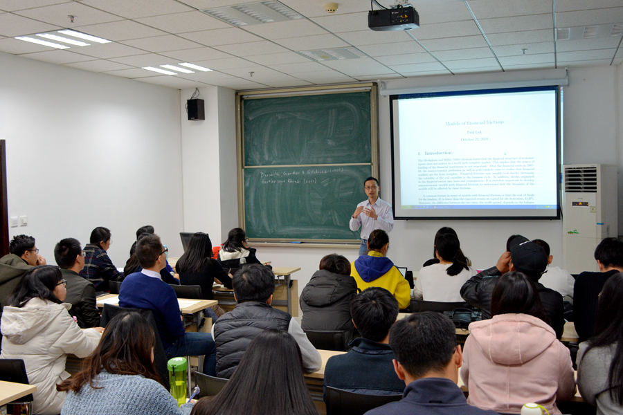 11月7日下午,beats365亚洲版官网第2期宏观经济与金融论坛在beats365亚洲版官网中心校区举行。香港浸会大学经济系陆尚勤博士为师生带来了题为“Models of financial frictions(金融摩擦模型) ”的学术报告。