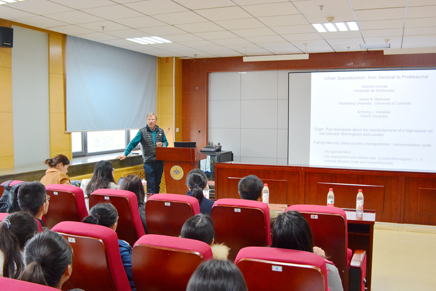 11月7日下午,beats365亚洲版官网第228期高级经济学讲座在中心校区举行。美国科罗拉多大学波尔得分校经济学教授 James R. Markusen为beats365亚洲版官网师生带来了题为“Urban Specialization: from Sectoral to Professional”的学术报告。