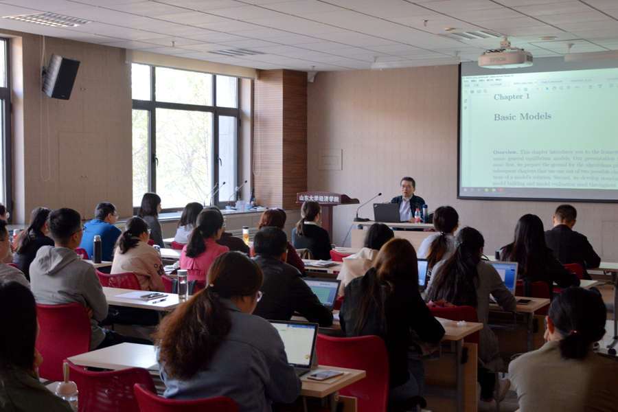 报告首先回顾了最优税收理论的宏观经济学理论框架Ramsey-Cass-Koopmans模型,并对模型求解方法和内在机制进行了分析。然后,报告基于Ljungqvist与Sargent合著的Recursive Macroeconomic Theory中的相关章节,分析了经济学家Ramsey提出的承诺下的最优税收问题(Optimal Taxation with Commitment)。在动态一般均衡(DGE)理论模型中,报告详细分析了递归效用函数,并讨论政府最优税收政策的设计问题及其求解方法。在此基础上,报告说明了如何利用该模型做进一步拓展与延伸,并对当前的研究热点进行了梳理和展望。 最后,杨建成教授与现场师生进行交流,并针对报告相关问题作详细解答。