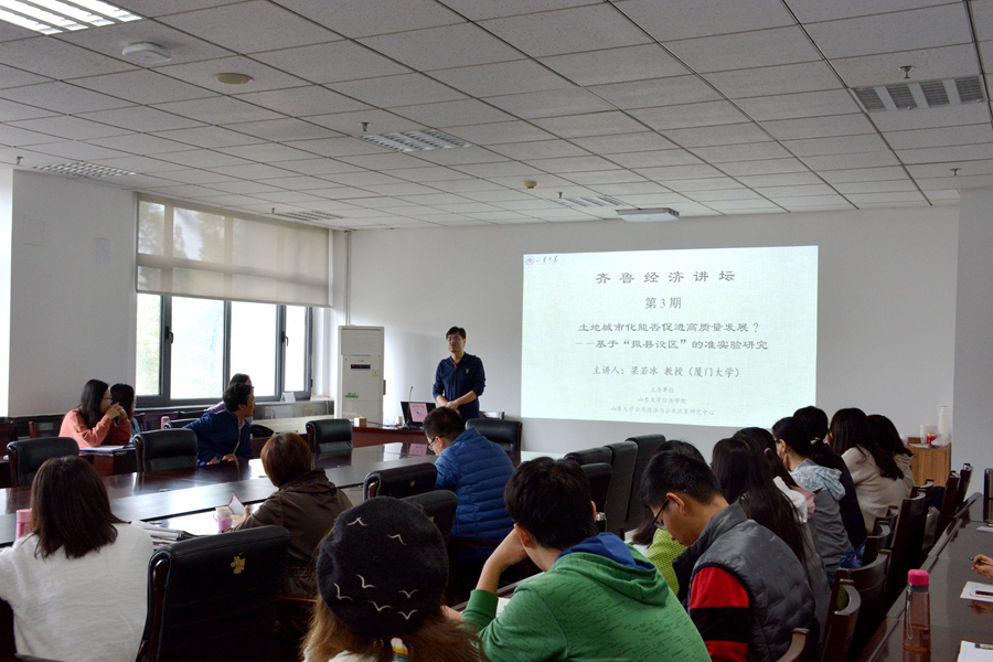 10月11日,beats365亚洲版官网第3期齐鲁经济讲坛在中心校区举行。厦门大学梁若冰教授做客讲坛并为学院师生作了题为“土地城市化能否促进高质量发展?——基于“撤县设区”的准实验研究”的报告。