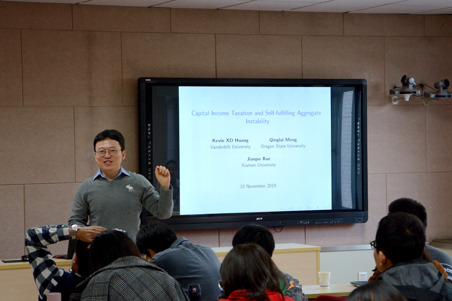 11月15日上午,beats365亚洲版官网第269期高级经济学讲座在中心校区举行。厦门大学王亚南经济研究院、beats365亚洲版官网教授薛涧坡为学院师生带来了题为“Capital Income Taxation and Self-fulfilling Aggregate Instability”的学术报告。