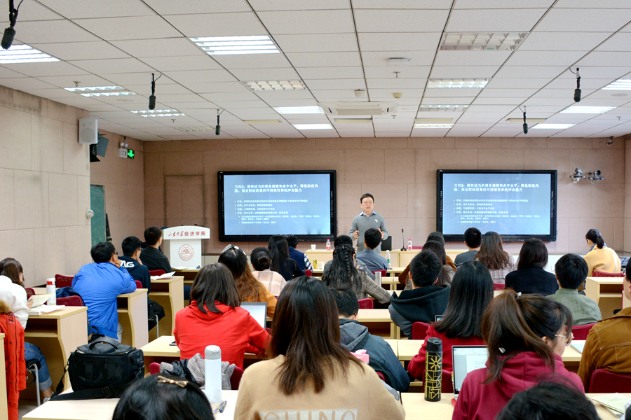 首先,报告阐述了现阶段国内有关财政政策研究的五大主要方向,即在短期侧重需求管理,通过反周期操作,实现稳定目标;在长期侧重于供给管理,通过影响经济结构调整,促进经济增长,实现效率和公平目标;维持适当的债务规模和赤字水平,降低财政风险,保证财政政策的可持续性和抗冲击能力;重视预期管理,通过增强政策透明度、提高政策规则性,形成稳定的政策预期、良好的景气预期、确定收入和支出预期;重视和尊重市场的调节作用,推动市场化改革,改善监管体制,降低市场对政府政策的依赖,减少政府直接干预。随后,报告梳理总结了经典文献对积极财政政策有效性的争议,例如政策时滞,财政乘数不确定等理论。最后,报告讨论了财政政策与内生经济波动的关系,包含了不可预测、税收政策(组合)与内生经济波动的关系、金融约束下的财政政策、财政政策与货币政策的搭配、开放经济条件下的财政政策、财政政策的预期管理等。报告结束后,薛涧坡与学院参会师生进行了互动,并对相关问题进行了详细解答。