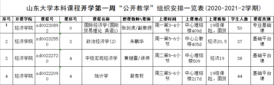 beats365亚洲版官网本科课程开学第一周“公开教学”组织安排一览表(2020-2021-2学期)