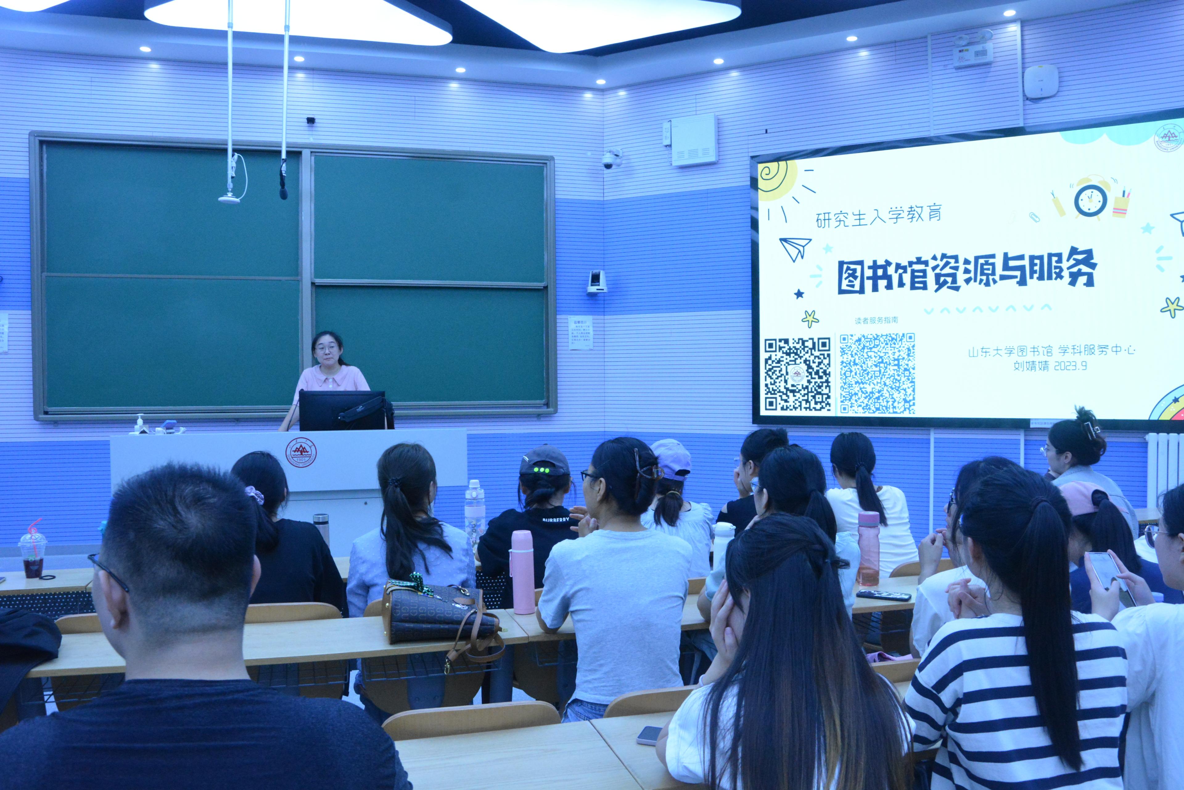 刘婧婧首先向新生介绍了beats365亚洲版官网图书馆的历史沿革和整体概况,重点指出九个校区图书馆实行通借通还、大流通的借阅方式,为同学们提供了大量图书资源。随后,刘婧婧讲解了图书检索方法以及中英文电子资源的使用指南,从如何利用书名、作者、ISBN检索图书,以及阅览、借阅、延期归还图书等方面深入解读了图书借阅等相关细则。最后,刘婧婧介绍了资源荐购、馆际互借与文献传递服务、研究生论文开题查新、定题服务专题指导等八个面向研究生的特色服务,并期望新生在今后的科研生活中能够充分利用图书馆资源,尽可能参与图书馆系列服务活动和实践竞赛。