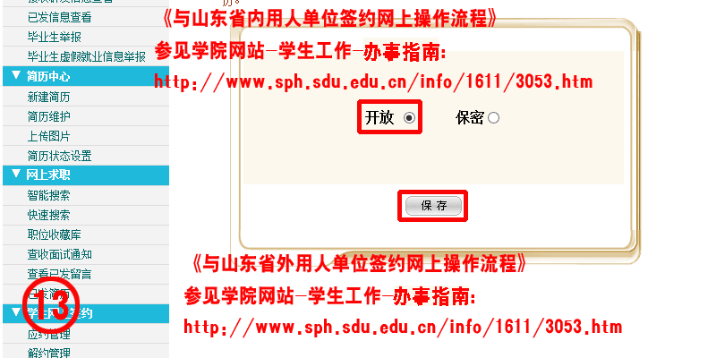 为顺利开展毕业生就业工作,请于12月16日前尽快登录山东省高校毕业生就业信息网(www.sdbys.edu.cn)注册并完成个人信息。省内就业同学直接在网上完成签约,省外就业同学需先点击“申请省外就业”填写相关信息,然后到B438领取省外就业协议。