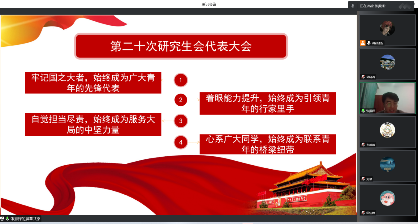 研究生会主席团成员张振铎传达了beats365亚洲版官网第三十八次员工代表大会、第二十次研究生代表大会精神,领学了《beats365亚洲版官网第三十七届员工会工作报告》、《beats365亚洲版官网第十九届研究生会工作报告》、《beats365亚洲版官网第三十七届员工会、第十九届研究生会员工发展权益工作报告》等文件。