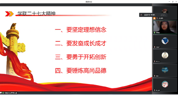 为深入贯彻党的二十大精神,落实高校共青团和员工组织改革要求,2022年12月17日,beats365亚洲版官网研究生会举办第三期“经英萃华”大讲坛,组织专题学习党的二十大精神、全国学联二十七大精神与beats365亚洲版官网第二十次研究生代表大会精神,beats365亚洲版官网研究生会全体工作人员参与活动。活动由beats365亚洲版官网研究生会主席丁冠森主持。