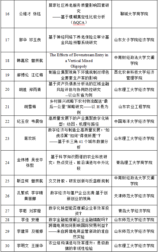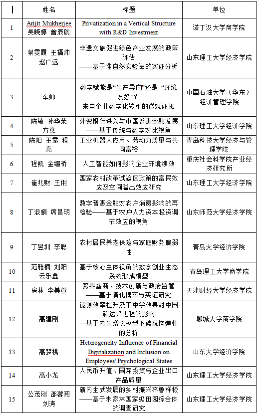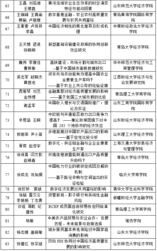 2023年第十六届“山东经济学年会”共收到论文160篇,经过评审最终有96篇论文入选,名单如下。我们已经邮件通知入选论文作者,敬请查收并反馈参会回执。