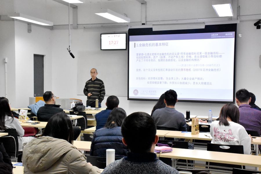 报告围绕金融危机的基本特征、金融危机与经济规律、金融危机与市场经济的运行过程、金融危机与经济周期的驱动力、金融危机的国际传染性以及金融危机与社会政治制度(体制)的关系等几个核心问题与同学们进行探讨交流。