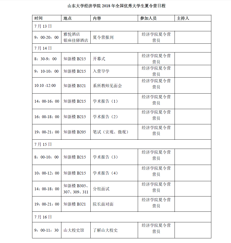 2018年财税学科夏令营日程